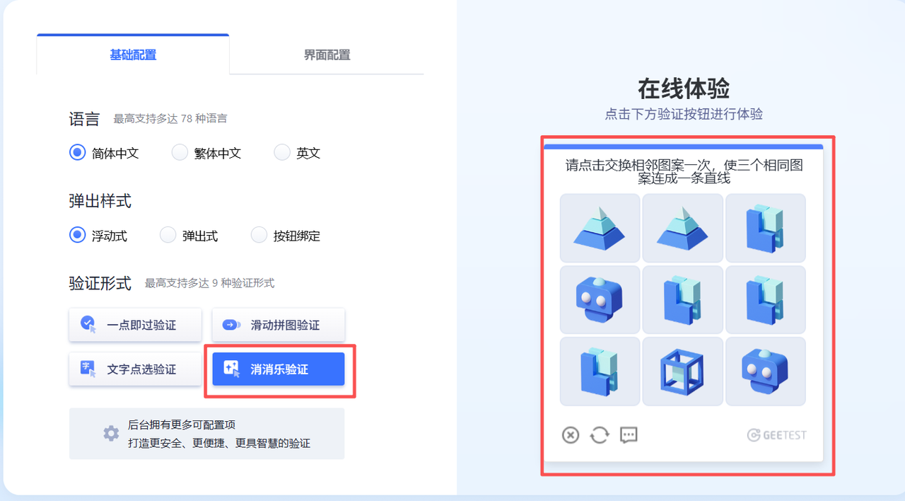 界面风格、背景图片、验证形式、难度等级都可按需配置,配置即生效,无需代码改动或上线排期。