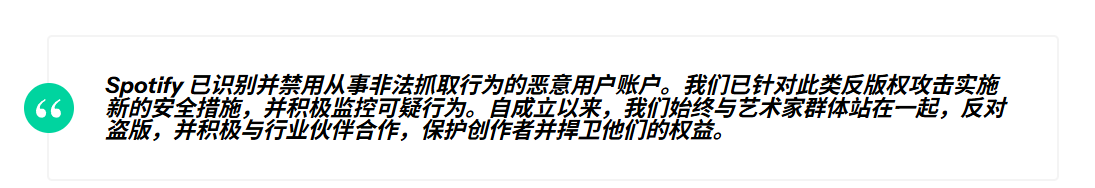 事件发生后,Spotify官方确认“第三方抓取了公开元数据,并使用了非法手段绕过DRM”,并迅速采取了措施: